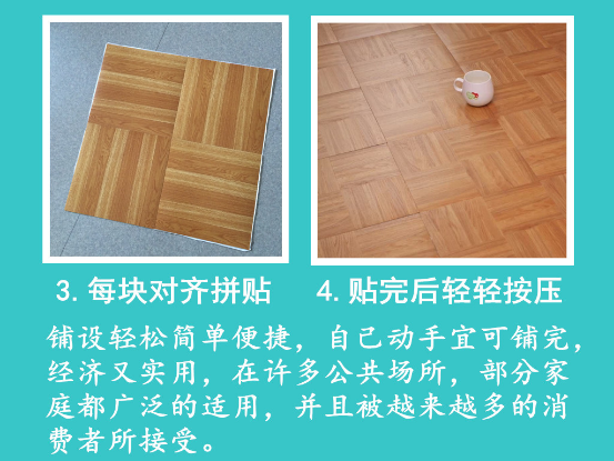 自粘地板使施工更嬌便捷,提高安裝效率,為您降低成本、節(jié)約時間。
